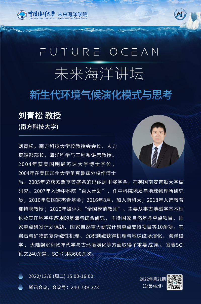未来海洋讲坛第四十六期-刘青松:新生代环境气候演化模式与思考