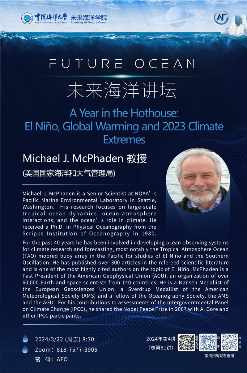 未来海洋讲坛第八十一讲-Michael McPhaden:A Year in the Hothouse: El Niño, Global Warming and 2023 Climate Extremes