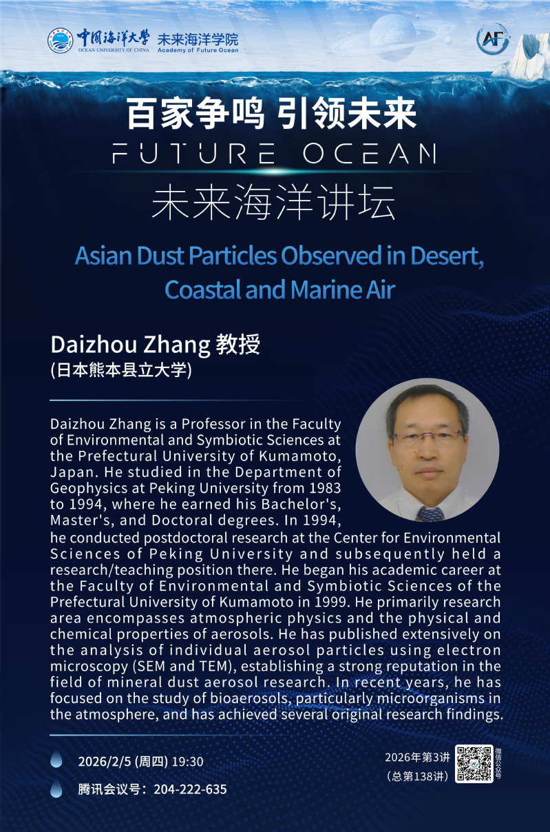 百家争鸣 引领未来丨未来海洋讲坛第一百三十八讲 日本熊本县立大学 Daizhou Zhang 教授主讲