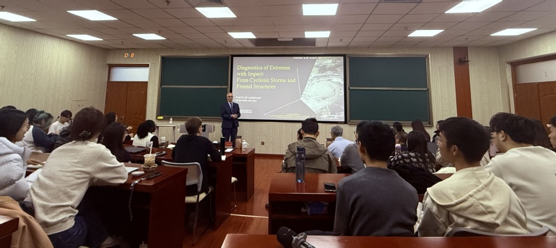 On December 9, at the joint invitation of Prof. Li Jianping, Dean of the Academy of Future Ocean, Prof. Gregor C. Leckebusch from the University of Birmingham delivered an academic lecture titled“Diagnostics of Extremes with Impact: From Cyclonic Storms and Frontal Structures”at Future Ocean Forum. The lecture was jointly hosted by Dean Li, and was attended by over 17,000 participants, including students from the AFO.