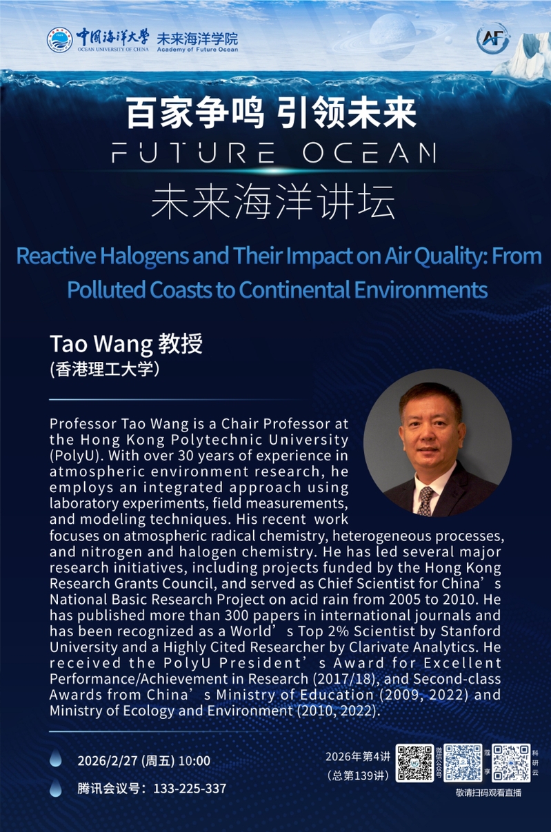 百家争鸣 引领未来丨未来海洋讲坛第一百三十九讲 香港理工大学 Tao Wang 教授主讲